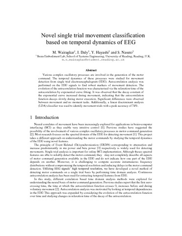 Uncontrolled Keywords | Movement detection, BCI, EEG, temporal dynamics of EEG, Autocorrelation |