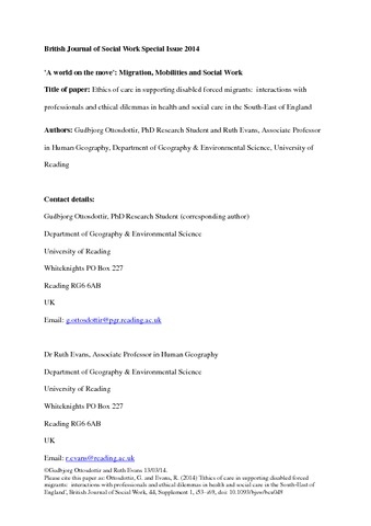 Ethics of care in supporting disabled forced migrants: interactions with professionals and ethical dilemmas in health and social care in the South-East of England.