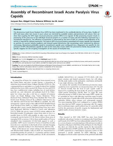 Assembly of Recombinant Israeli Acute Paralysis virus capsids.