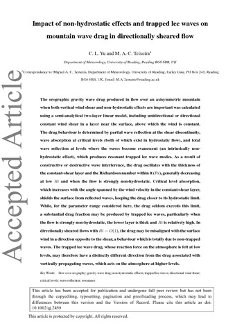 Impact of non-hydrostatic effects and trapped lee waves on mountain wave drag in directionally sheared flow.