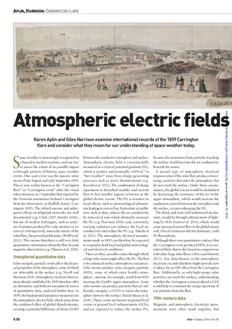 Karen Aplin and Giles Harrison examine international records of the 1859 Carrington flare and consider what they mean for our understanding of space weather today. Space weather is increasingly recognized as a hazard to modern societies, and one way to assess the extent of its possible impact is through analysis of historic space weather events. One such event was the massive solar storm of late August and early September 1859. This is now widely known as the “Carrington flare” or “Carrington event” after the visual solar emissions on 1 September first reported by the Victorian astronomer Richard Carrington from his observatory in Redhill, Surrey (Carrington 1859). The related aurorae and subsequent effects on telegraph networks are well documented (e.g. Clark 2007, Boteler 2006), but use of modern techniques, such as analysis of nitrates produced by solar protons in ice cores to retrospectively assess the nature of the solar flare, has proved problematic (Wolff et al. 2012). This means that there is still very little quantitative information about the flare beyond magnetic observations (e.g. Viljanen et al. 2014).