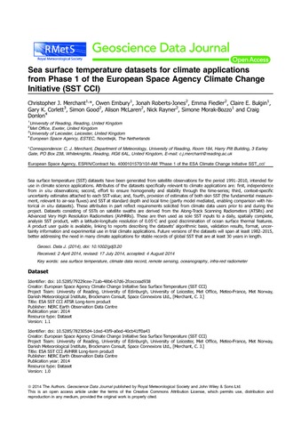 Sea surface temperature (SST) datasets have been generated from satellite observations for the period 1991–2010, intended for use in climate science applications. Attributes of the datasets specifically relevant to climate applications are: first, independence from in situ observations; second, effort to ensure homogeneity and stability through the time-series; third, context-specific uncertainty estimates attached to each SST value; and, fourth, provision of estimates of both skin SST (the fundamental measure- ment, relevant to air-sea fluxes) and SST at standard depth and local time (partly model mediated, enabling comparison with his- torical in situ datasets). These attributes in part reflect requirements solicited from climate data users prior to and during the project. Datasets consisting of SSTs on satellite swaths are derived from the Along-Track Scanning Radiometers (ATSRs) and Advanced Very High Resolution Radiometers (AVHRRs). These are then used as sole SST inputs to a daily, spatially complete, analysis SST product, with a latitude-longitude resolution of 0.05°C and good discrimination of ocean surface thermal features. A product user guide is available, linking to reports describing the datasets’ algorithmic basis, validation results, format, uncer- tainty information and experimental use in trial climate applications. Future versions of the datasets will span at least 1982–2015, better addressing the need in many climate applications for stable records of global SST that are at least 30 years in length.