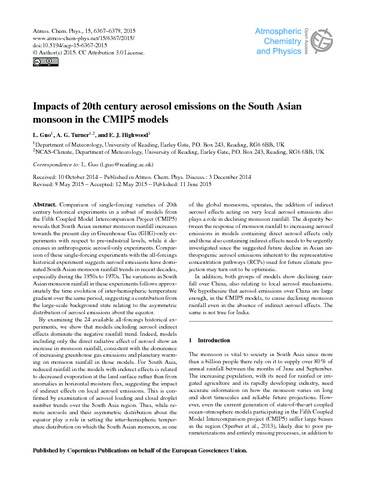 Impacts of 20th century aerosol emissions on the South Asian monsoon in the CMIP5 models.