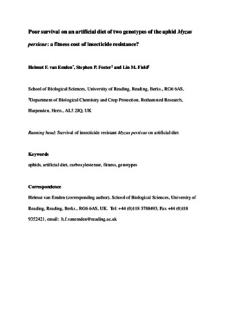 Uncontrolled Keywords | Aphids; artificial diet; carboxylesterase; fitness; genotypes. |