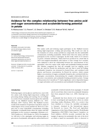 Evidence for the complex relationship between free amino acid and sugar concentrations and acrylamide-forming potential in potato.