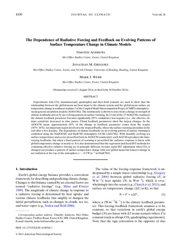 The dependence of radiative forcing and feedback on evolving patterns of surface temperature change in climate models.