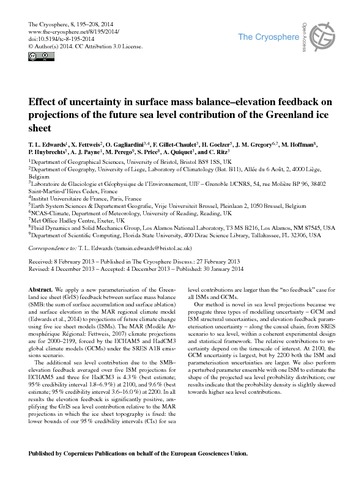 Edwards, T. L., Fettweis, X., Gagliardini, O., Gillet-Chaulet, F., Goelzer, H., Gregory, J.M. ORCID: https://orcid.org/0000-0003-1296-8644, Hoffman, M., Huybrechts, P., Payne, A. J., Perego, M., Price, S., Quiquet, A. and Ritz, C.