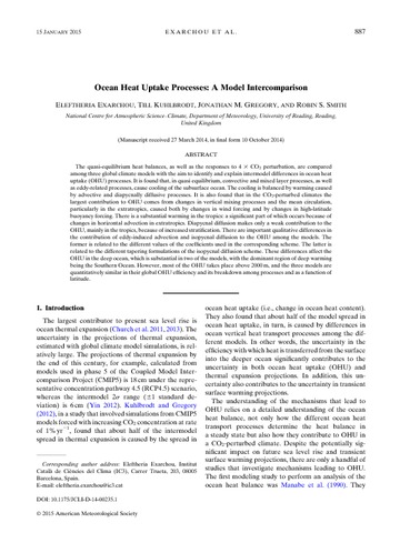 Exarchou, E., Kuhlbrodt, T. orcid id iconORCID: https://orcid.org/0000-0003-2328-6729, Gregory, J. M. orcid id iconORCID: https://orcid.org/0000-0003-1296-8644 and Smith, R. S. orcid id iconORCID: https://orcid.org/0000-0001-7479-7778 (2015) Ocean heat uptake processes: a model intercomparison. Journal of Climate, 28 (2). pp. 887-908. ISSN 1520-0442 doi: 10.1175/JCLI-D-14-00235.1