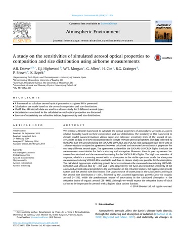 Esteve, A. R., Highwood, E. J., Morgan, W. T., Allen, G., Coe, H., Grainger, R. G., Brown, P. and Szpek, K. (2014) A study on the sensitivities of simulated aerosol optical properties to composition and size distribution using airborne measurements. Atmospheric Environment, 89. pp. 517-524. ISSN 13522310 doi: 10.1016/j.atmosenv.2014.02.063