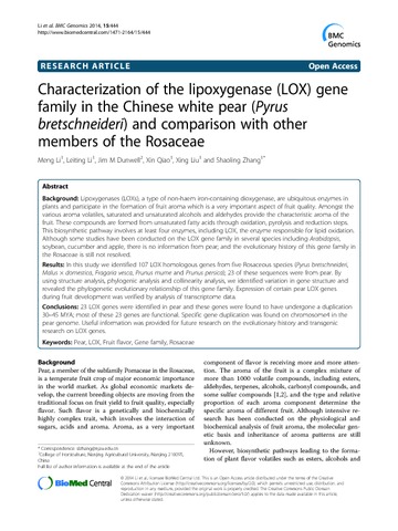 Wu J, Wang Z, Shi Z, Zhang S, Ming R, Zhu S, Khan MA, Tao S, Korban SS, Wang H, Chen NJ, Nishio T, Xu X, Cong L, Qi K, Huang X, Wang Y, Zhao X, Wu J, Deng C, Gou C, Zhou W, Yin H, Qin G, Sha Y, Tao Y, Chen H, Yang Y, Song Y, Zhan D, et al.: The genome of the pear (Pyrus bretschneideri Rehd.).
