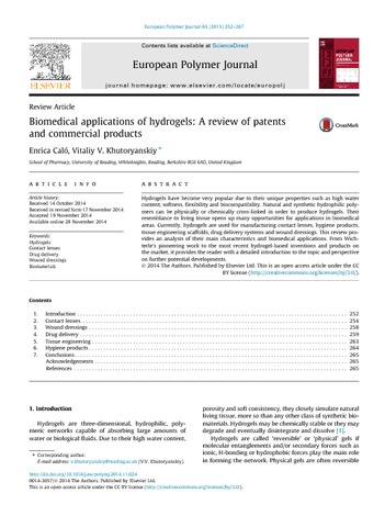 | Uncontrolled Keywords | Hydrogels; Contact lenses; Drug delivery; Wound dressings; Biomaterials |