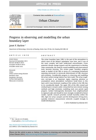 Barlow, J. F. (2014) Progress in observing and modelling the urban boundary layer. Urban Climate, 10 (2). pp. 216-240. ISSN 2212-0955 doi: 10.1016/j.uclim.2014.03.011