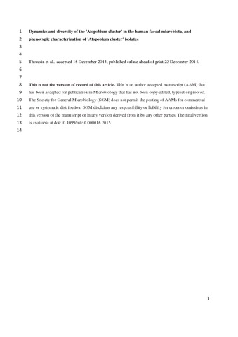 Thorasin, T., Hoyles, L. and McCartney, A. L. (2015) Dynamics and diversity of the 'Atopobium cluster' in the human faecal microbiota, and phenotypic characterization of 'Atopobium cluster' isolates. Microbiology, 161 (3). pp. 565-579. ISSN 1465-2080 doi: 10.1099/mic.0.000016