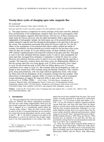 Lockwood, M. orcid id iconORCID: https://orcid.org/0000-0002-7397-2172 (2003) Twenty-three cycles of changing open solar magnetic flux. Journal of Geophysical Research, 108 (A3). 1128. ISSN 0148-0227 doi: 10.1029/2002JA009431