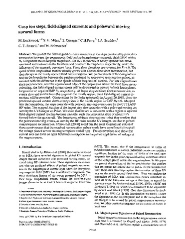 Cusp ion steps, field-aligned currents and poleward moving auroral forms.