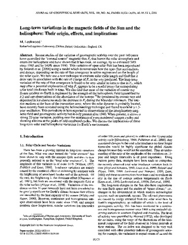Long-term variations in the magnetic fields of the Sun and the heliosphere: their origin, effects, and implications.