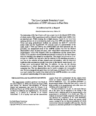 The low-latitude boundary layer: Application of ISTP advances to past data.