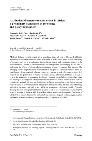 Otto FEL, Jones RG, Halladay K, Allen MR (2013) Attribution of changes in precipitation patterns in African rainforests. Phil Trans R Soc B 368(1625)