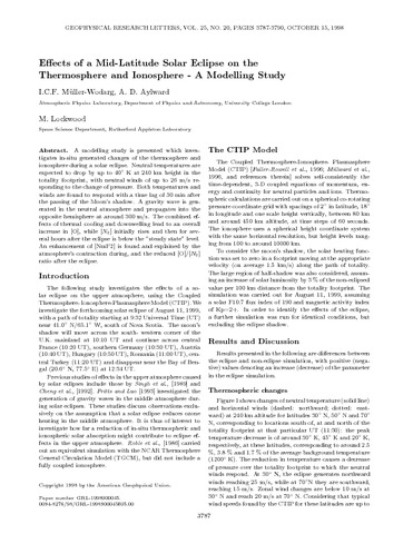 Müller-Wodarg, I. C. F., Aylward, A. D. and Lockwood, M. orcid id iconORCID: https://orcid.org/0000-0002-7397-2172 (1998) Effects of a mid-latitude solar eclipse on the thermosphere and ionosphere: a modelling study. Geophysical Research Letters, 25 (20). pp. 3787-3790. ISSN 0094-8276 doi: 10.1029/1998GL900045