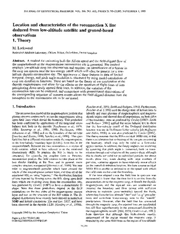Location and characteristics of the reconnection X line deduced from low-altitude satellite and ground-based observations: 1. Theory.