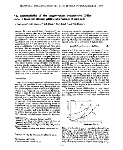 The characteristics of the magnetopause reconnection X-line deduced from low-altitude satellite observations of cusp ions.