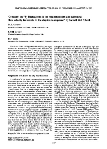 Newell and Sibeck [1993] (hereafter N&S) list some objections to our interpretation of dayside auroral transients and associated azimuthal flow bursts in terms of pulsed reconnection [e.g. Lockwood et al., 1989; 1993a]. They present what they term an “apparently overlooked” alternative explanation in terms of steady reconnection and fluctuations in the magnitude of the By component of the magnetosheath field. The objections of N&S can all be answered by reference to our previous publications and their alternative explanation was only “overlooked” in so far as it fails to explain the observations. Here we discuss just some of the reasons why the objections of N&S are invalid, and then give reasons why the events are not simply due to magnetosheath |By| changes.