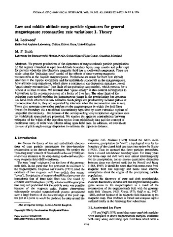 Low and middle altitude cusp particle signatures for general magnetopause reconnection rate variations: 1. Theory.