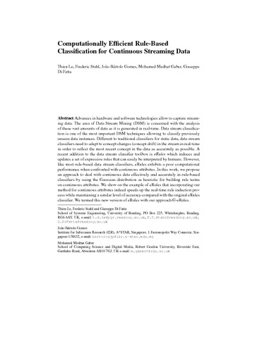 Computationally efficient rule-based classification for continuous streaming data.