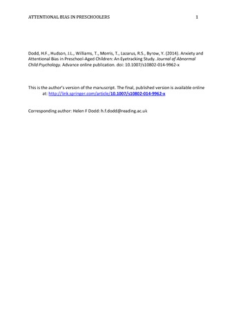Anxiety and attentional bias in preschool-aged children: an eyetracking study.