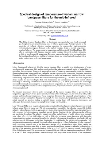 8. J. S. Seeley, R. Hunneman, and A. Whatley: "Temperature-invariant and other narrow band IR filters containing PbTe, 4-20 um," Proc. SPIE 246, 83-94 (1980).