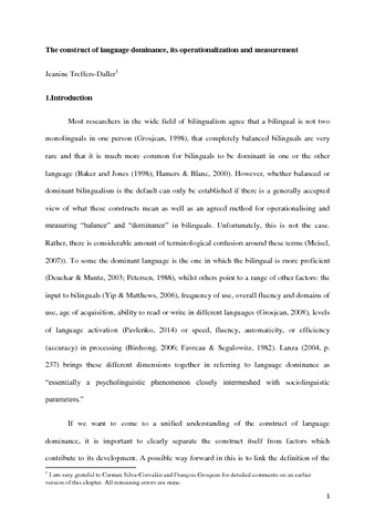 Language Dominance in Bilinguals: Issues of Measurement and Operationalization.