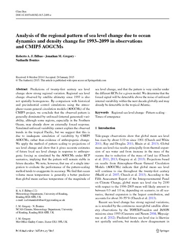 Analysis of the regional pattern of sea level change due to ocean dynamics and density changes for 1993-2099 in observations and CMIP5 AOGCMs.
