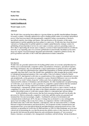 Publisher Statement | This is the submitted version of the following book chapter: Pain, K. (2015) World cities. In: International Encyclopedia of Geography: People, the Earth, Environment, and Technology. Wiley, Association of American Geographers, Washington, USA. (In Press), which will be published in final form at DOI 10.1002/9781118786352 |