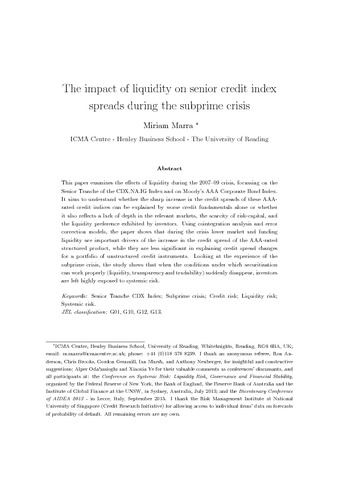 Uncontrolled Keywords Senior Tranche CDX Index; Subprime crisis; Credit risk; Liquidity risk; Systemic risk