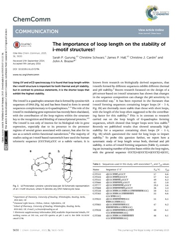 Gurung, S. P., Schwarz, C., Hall, J. P. orcid id iconORCID: https://orcid.org/0000-0003-3716-4378, Cardin, C. J. orcid id iconORCID: https://orcid.org/0000-0002-2556-9995 and Brazier, J. A. orcid id iconORCID: https://orcid.org/0000-0002-4952-584X (2015) The importance of loop length on the stability of i-motif structures. Chemical Communications, 51 (26). pp. 5630-5632. ISSN 1359-7345 doi: 10.1039/C4CC07279K