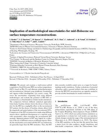 Implication of methodological uncertainties for mid-Holocene sea surface temperature reconstructions.