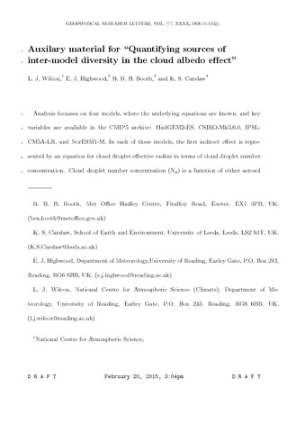 Uncontrolled Keywords | Aerosol; Indirect effect; Cloud albedo; Uncertainty |