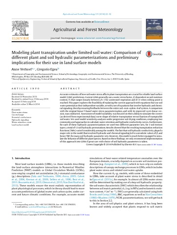 Verhoef, A. orcid id iconORCID: https://orcid.org/0000-0002-9498-6696 and Egea, G. (2014) Modeling plant transpiration under limited soil water: comparison of different plant and soil hydraulic parameterizations and preliminary implications for their use in land surface models. Agricultural and Forest Meteorology, 191. pp. 22-32. ISSN 0168-1923 doi: 10.1016/j.agrformet.2014.02.009