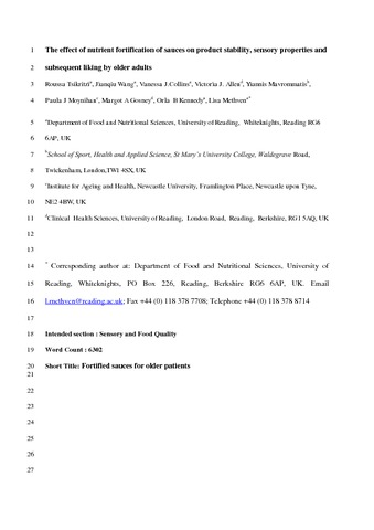 The effect of nutrient fortification of sauces on product stability, sensory properties and subsequent liking by older adults.