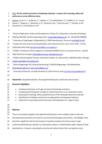 The EU societal awareness of landscape indicator: a review of its meaning, utility and performance across different scales.