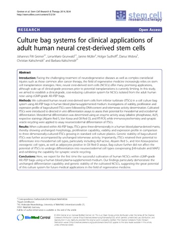 Culture bag systems for clinical applications of adult human neural crest-derived stem cells.