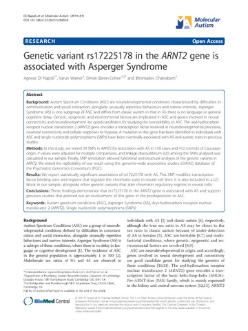 Genetic variant rs17225178 in the ARNT2 gene is associated with Asperger Syndrome