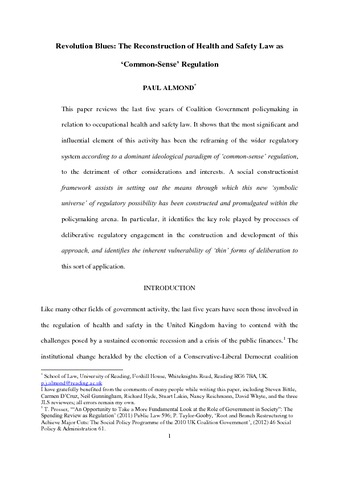 Revolution blues: the reconstruction of Health and Safety as a ‘common-sense’ form of regulation.