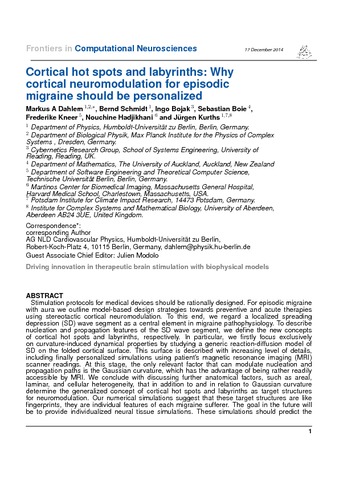 Dahlem, M. A. (2013). Migraine generator network and spreading depression dynamics as neuromodulation targets in episodic migraine. Chaos 23, 046101. doi: 10.1063/1.4813815