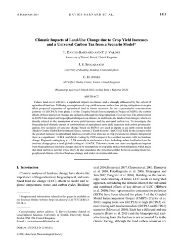Davies-Barnard, T., Valdes, P. J., Singarayer, J. and Jones, C. D. (2014) Climatic impacts of land-use change due to crop yield increases and a universal carbon tax from a scenario model*. Journal of Climate, 27 (4). pp. 1413-1424. ISSN 1520-0442 doi: 10.1175/JCLI-D-13-00154.1