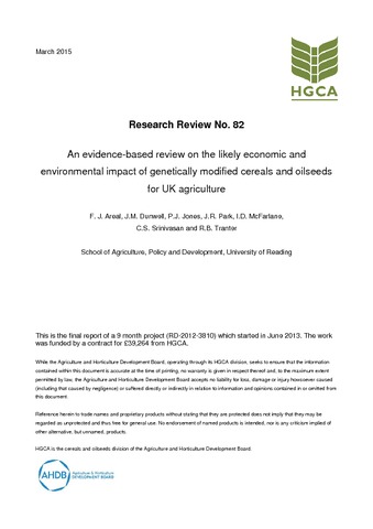 An evidence-based review on the likely economic and environmental impact of genetically modified cereals and oilseeds for UK agriculture.