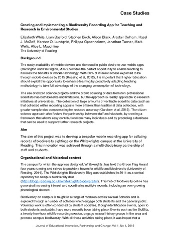 This case study reports on the development of a bespoke mobile recording app for collating records of biodiversity sightings on a University campus. This innovative project was achieved through a multi-disciplinary partnership of staff and students. It is hoped that the app itself will benefit lecturers by streamlining data collection during teaching and learning activities, whilst engaging students and highlighting the wealth of diversity available on campus