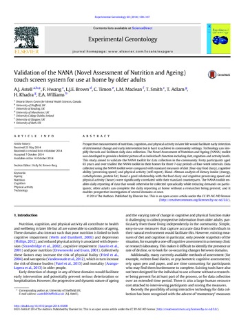 Khadra, H., Hwang, F., 2014. In: Walker, A. (Ed.), NANA: Novel Assessment of Nutrition