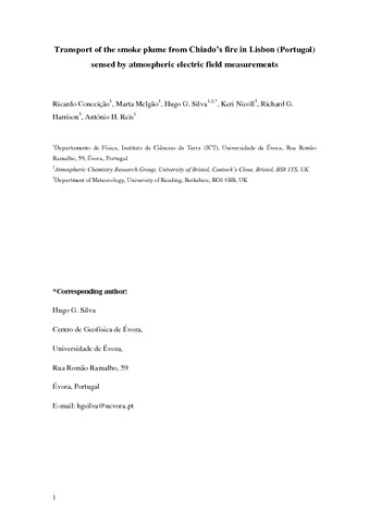 Transport of the smoke plume from Chiado’s fire in Lisbon (Portugal) sensed by atmospheric electric field measurements.
