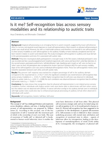 Uncontrolled Keywords Self-recognition, Autism, Self-face, Self-voice